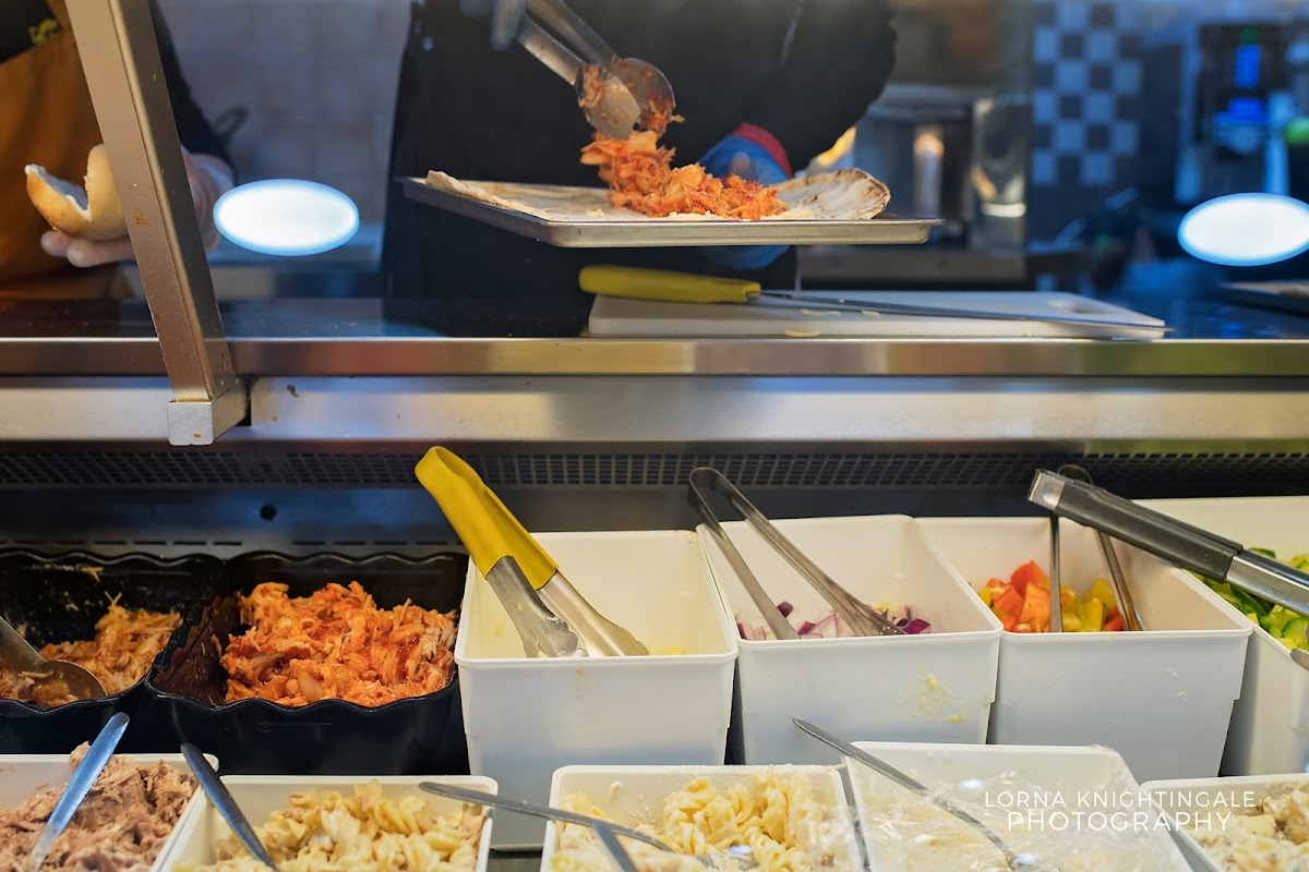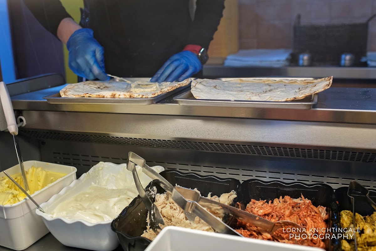 The menu centers on wraps and salads, with a particular emphasis on chicken options. Those stopping by often opt for the variety of fillings that keep the selection interesting day after day—whether it’s the creamy coronation chicken or one of the warming, hearty salad boxes. For those who prefer something different, there are also falafel and lamb options, plus classic sides like jacket potatoes and pickles, which round out a filling yet easy-to-eat meal.