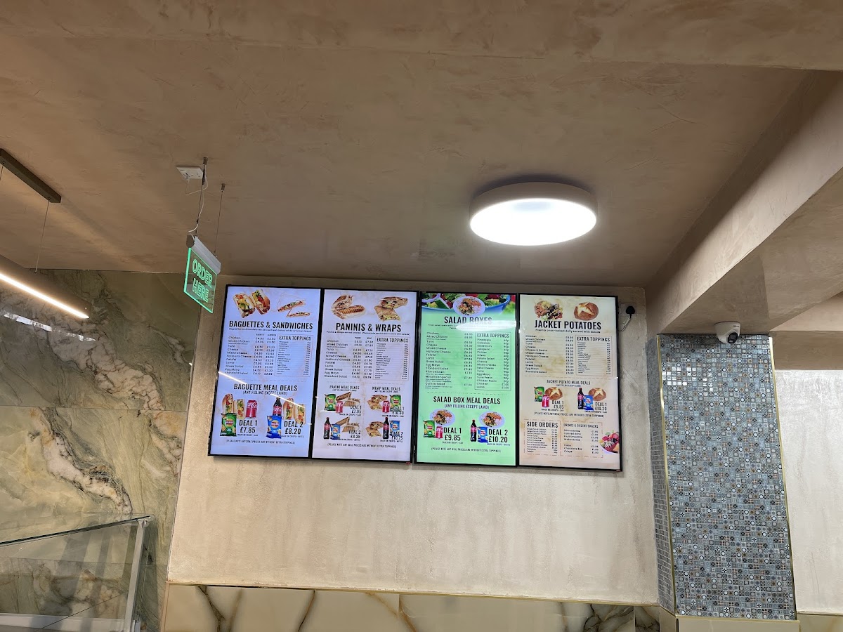 The menu is designed for quick ordering and casual dining, offering a selection of fresh, simple dishes and wraps with various fillings and salads. This makes it suitable for customers seeking a range of light to moderately filling options throughout the day.
